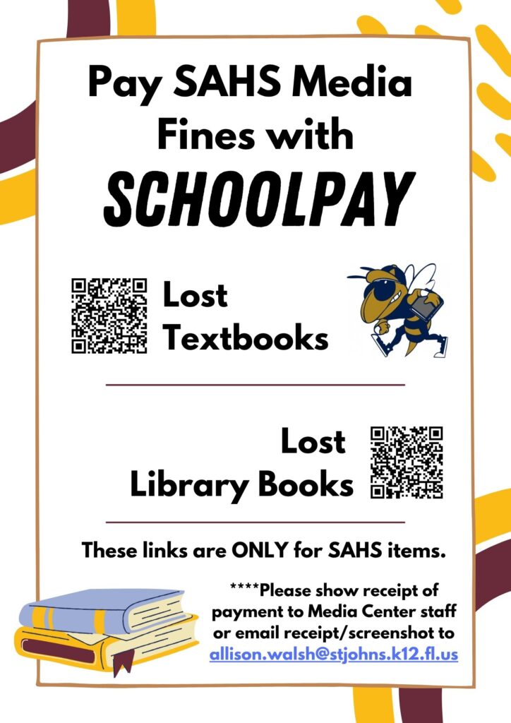 Click on this SchoolPay link for Lost or Damaged LIBRARY MATERIALS & BOOKS, and AICE Textbooks: https://www.schoolpay.com/pay/for/LostDamaged-Library-Books-20252026/S3V2Mu