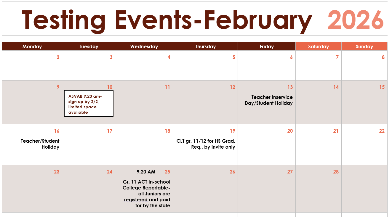- Gr. 11 Accommodated Students (504 or IEP)Please be sure to complete the accommodation consent request form and return to Ms. Jasper by Monday, December 15th, 2025, in the media center or by email at [email protected]. This must be processed well in advance for ACT to approve your school-based accommodations in time for the Feb. 25th ACT Test Day. Requests after this date will not be processed in time and students will test without school-based accommodations.